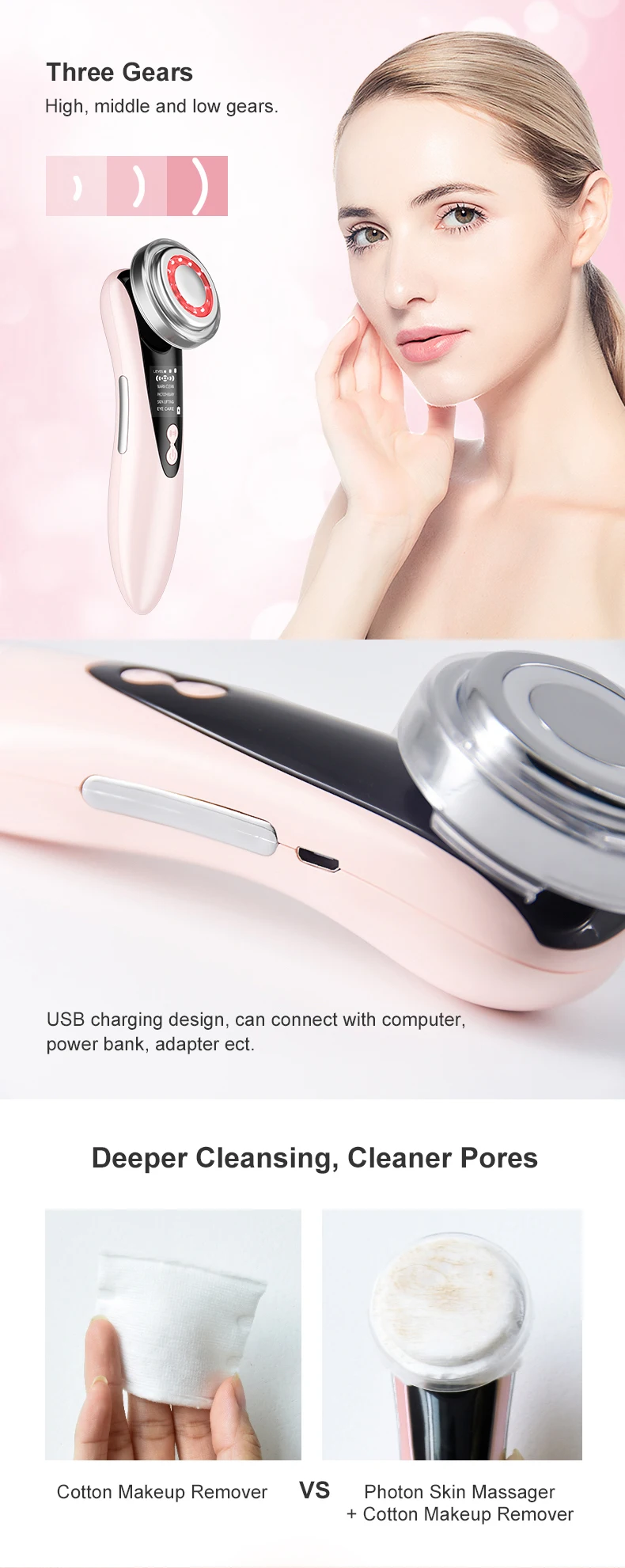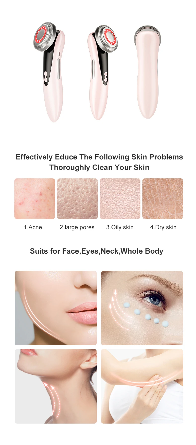 ✨ Unlock Radiant Skin! 🌟 What it is - Experience the innovative 4-in-1 Facial Massager that combines Electroporation, RF Radio Frequency, and LED Light therapy to rejuvenate your skin. This powerful beauty device targets wrinkles and fine lines, delivering spa-like results from the comfort of your home.💖 Why you need it:- Reduces appearance of wrinkles and fine lines.- Stimulates collagen production for firmer skin.- Enhances absorption of skincare products, maximizing their effectiveness.- Provides soothing LED light therapy for a youthful glow.💎 Why you’ll love it:- Compact and portable design for on-the-go beauty treatments.- Easy-to-use settings tailored for all skin types.- Premium quality and advanced technology for visible results.📅 How to use it: Start with a cleansed face. Select your desired mode and gently glide the device across your skin in upward motions for 5-10 minutes. Combine it with your favorite serums for the best results!🚀 Grab yours today and transform your skincare routine! Enjoy exclusive discounts for a limited time – you deserve to feel beautiful in your skin! Satisfaction guaranteed.